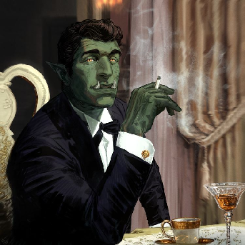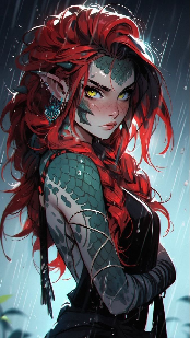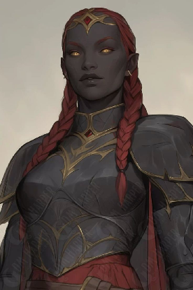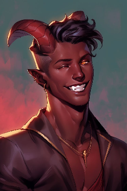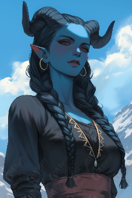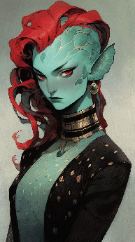Encountering an Infernal, you may be surprised to learn of their Vasaran ancestry. Besides their pointed ears, little else is familiar. Their skin flaunts jewel tones — emerald, sapphire, ruby, amber, and violet — set on compact, robust frames more akin to humans than their lithe forebears. Sharp teeth and whip-like tails further identify them, though many file the former or or remove the latter in efforts to minimize standing out. Most striking of all are Infernal horns, curving in a variety of shapes, often lengthening throughout life. Revered as symbols of strength and wisdom, they command respect, even as they tempt high prices in ruthless black market trading.